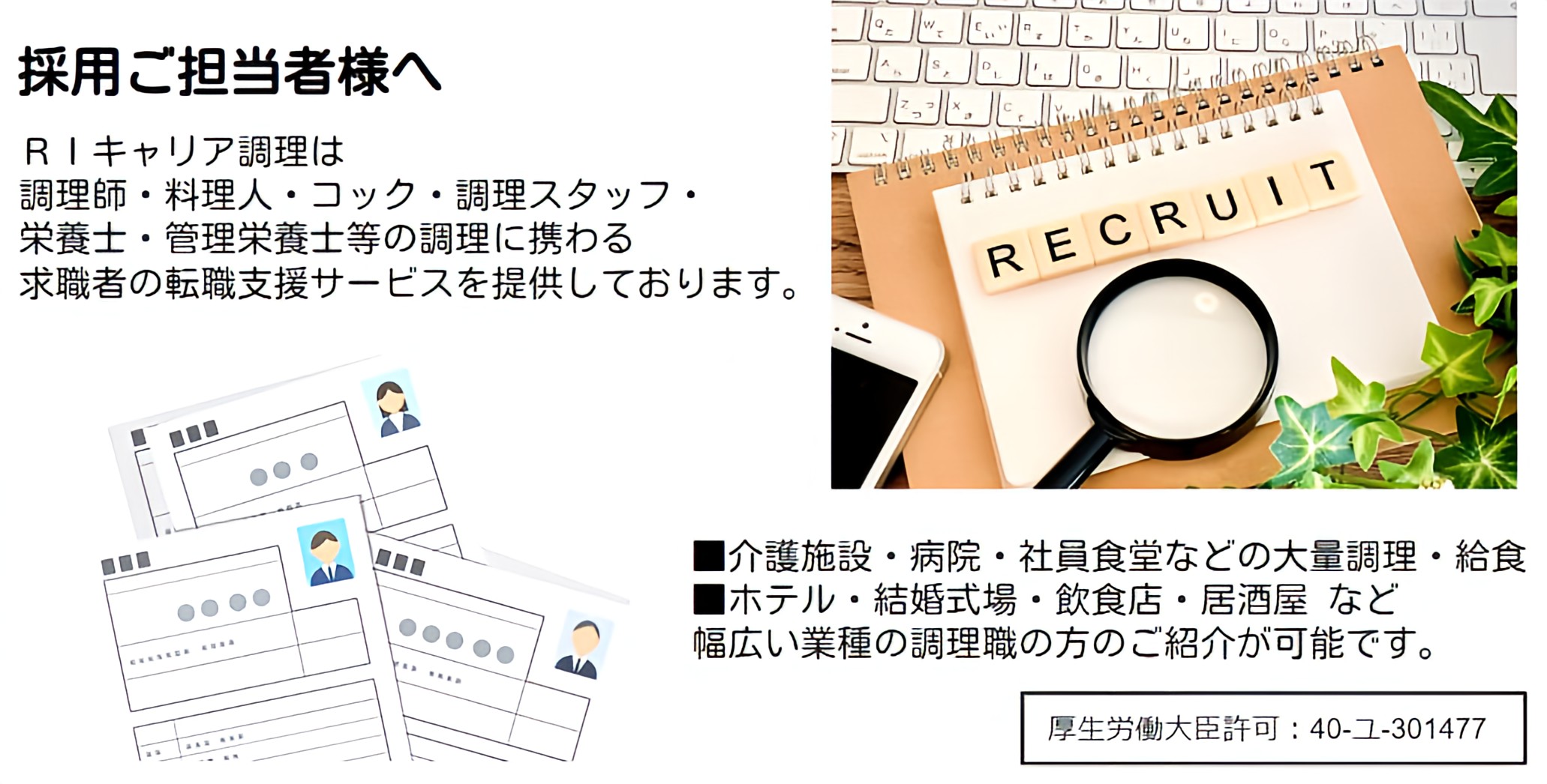 調理専任の担当者が仕事内容や求人条件をもとに